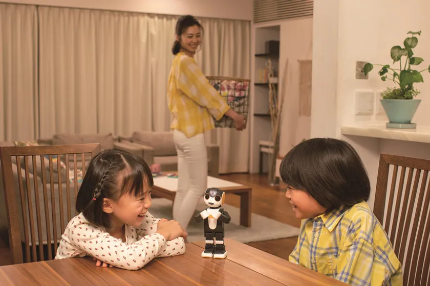 明るい言葉と愛らしい仕草で普段の暮らしを一生懸命盛りあげ、ひとりの時間や家族の会話を楽しむきっかけを生み、ココロを前向きにしてくれるロボットです。