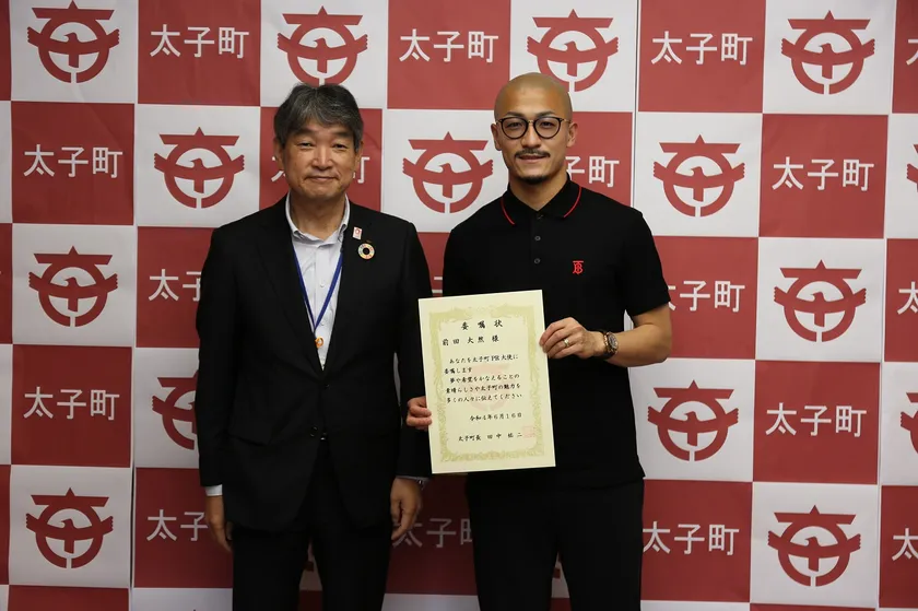 今後、前田 大然選手には太子町のPR大使として、町の魅力を広く内外に発信、紹介するとともに、町のイメージアップ及び知名度向上のため、ご協力いただきます。