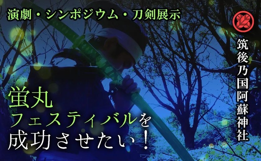 みやまの蛍丸フェスティバル実行委員会は、みやま市に鎮座する筑後乃国阿蘇神社の由緒を元にした演劇を中心とした「みやまの蛍丸フェスティバル」を令和4年11月12〜13日に開催します。本イベントをより良いものとするために、7月7日(木)よりクラウドファンディングに挑戦中です。