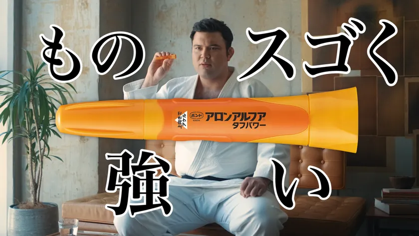 瞬間接着剤「アロンアルフア」、発売50周年! アロンアルフア史上最強(※1)の 熱・水に強い商品「タフパワー」新CMに 柔道家 ウルフアロンさん出演! テンポの良いサウンドロゴにあわせてタフパワーを表現