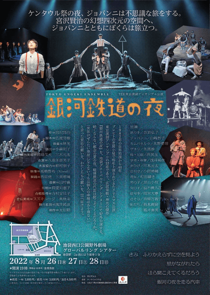 宮沢賢治の有名作を1982年の世界初演より1800回以上公演した東京演劇アンサンブル 初の野外公演が決定!『銀河鉄道の夜』8/26より開幕 カンフェティにてチケット発売!