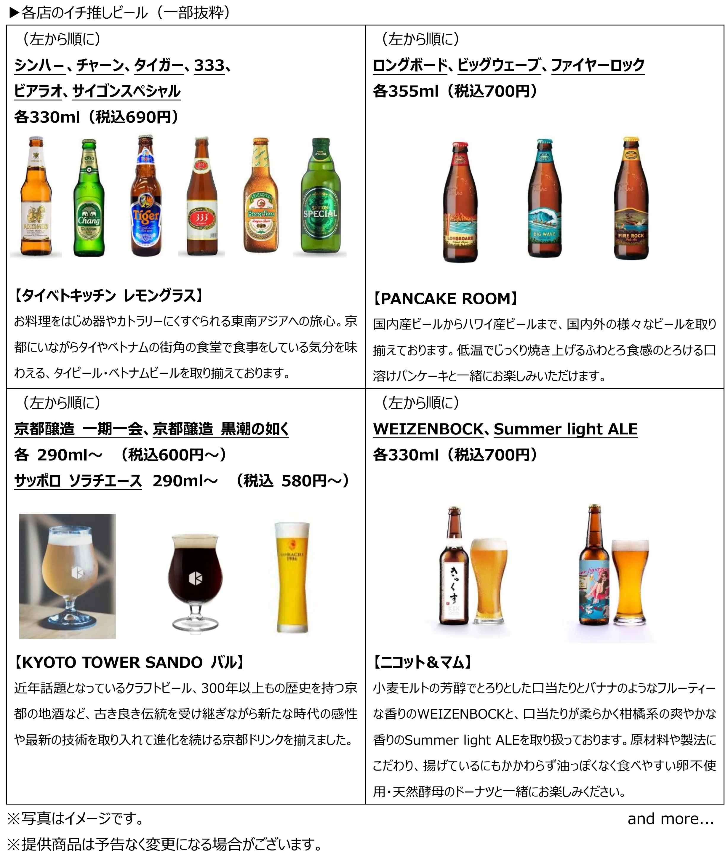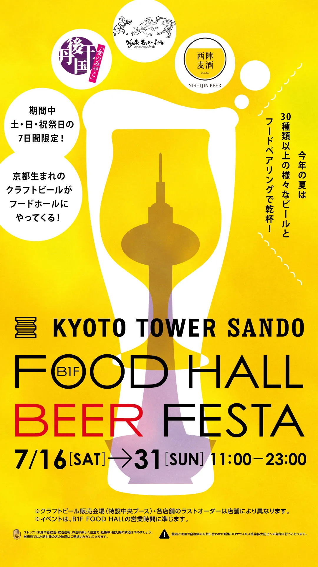 京都駅前スグ「京都タワーサンド」 『FOOD HALL BEER FESTA』を開催 京都クラフトビールのブルワリーが週替わりでB1F中央特設ブースに登場!