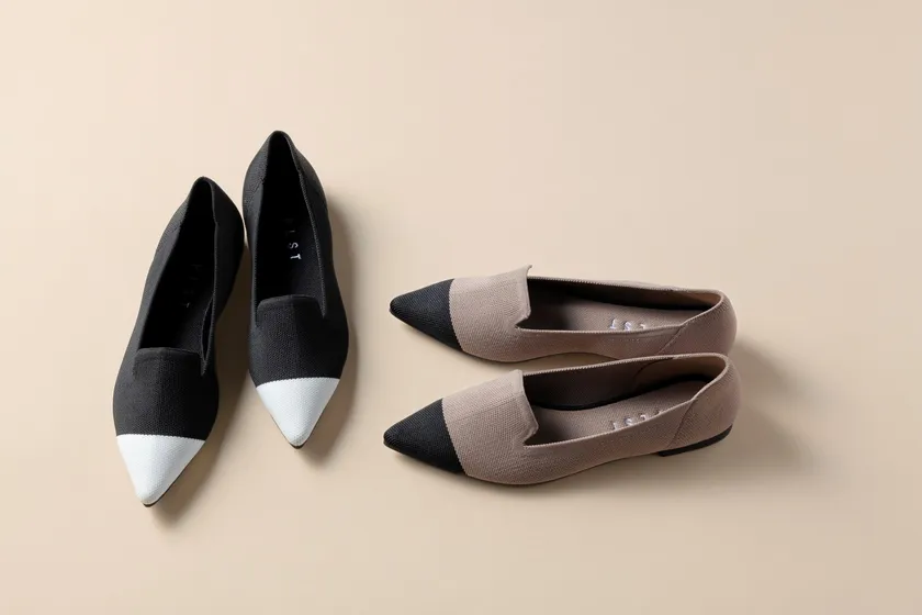 ニット素材の85%が再生PET樹脂、靴底にはTPEを使用。 インソールを取り外し、ご家庭で丸洗い可!上品かつシックなバイカラーデザインで 素足でフォーマル・カジュアルにも履ける万能アイテム