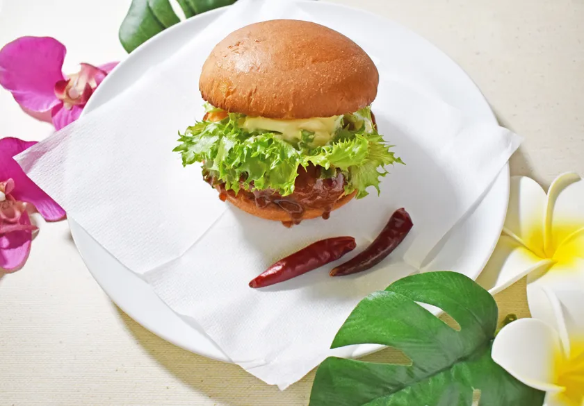 特製サンバルソースを使用したハンバーガーは暑い夏にも食べやすい味に仕上げています。インドネシアのハンバーガーショップでもよく提供されています。(茶屋町店限定商品です。)