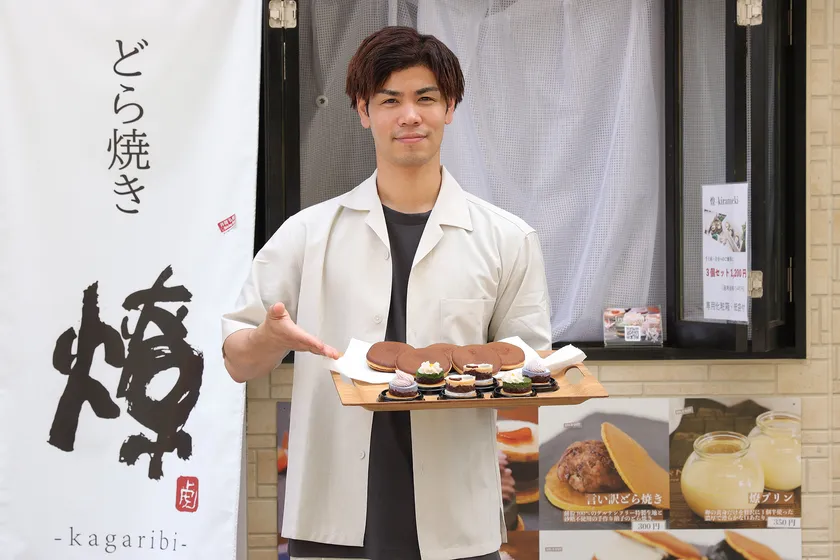 和菓子は、四季の移ろいをその身に映し、私たちに日本の本来の美しさと豊かさを感じさせてくれます。『燎 - kagaribi -』は、先達の創り上げてきた工夫に学び、燎オリジナルに昇華させ、手づくりのどら焼きを通して喜びや幸せの具現化を探求しています。こういう想いでどら焼きを作っているのは、若くて、元プロボクサーという経歴をもつ平野秀光氏です。