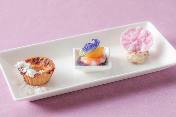 ・セイボリー:シェフ特製3種のセイボリー(シーフードマリネ/ポテトサラダ/ベーコンのキッシュ)