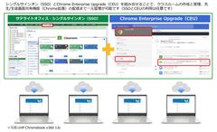 「サテライトオフィス・先生 / 生徒画面共有機能 for Classroom」は、先生と生徒の画面を共有し、先生側で簡単に管理できる機能です。画面共有のほか、先生から全生徒または特定生徒へのメッセージ送信、生徒の画面のライブ閲覧、全生徒または特定生徒の画面の強制ロックなどが可能です。このほか、Google Chromeの拡張機能として提供するため、Chrome Enterprise Upgradeでの自動インストールや管理が可能となります。