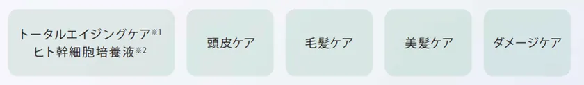 また、国際美容業界イベント「in-cosmetics」で受賞し世界的にも高機能・高品質として認められた美容成分を、髪と地肌のエイジングケア※1に欠かせない頭皮ケア、毛髪ケア、美髪ケア、ダメージケアにはたらきかける成分として、贅沢に配合しています。