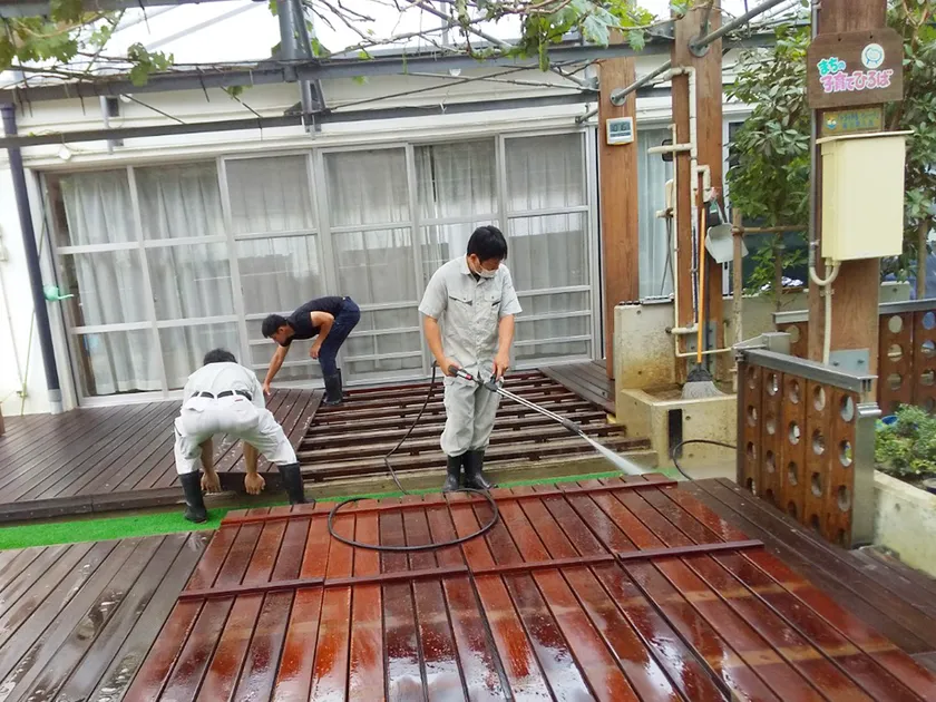 ウッドデッキ洗浄作業