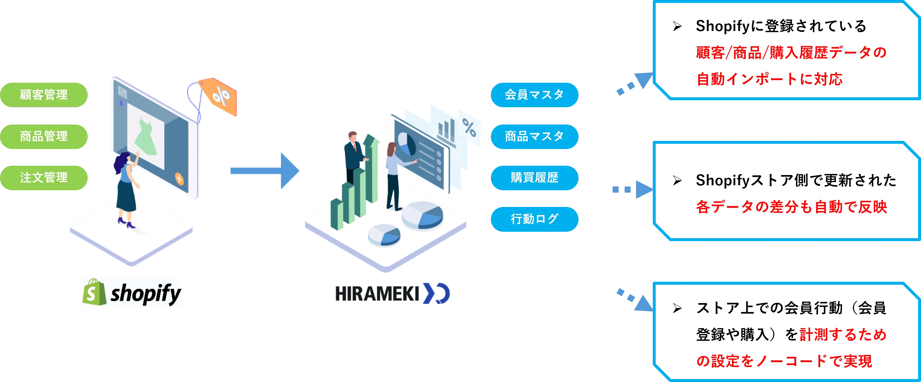 Shopifyアプリ利用時のHIRAMEKI XDとShopifyの連携概要図