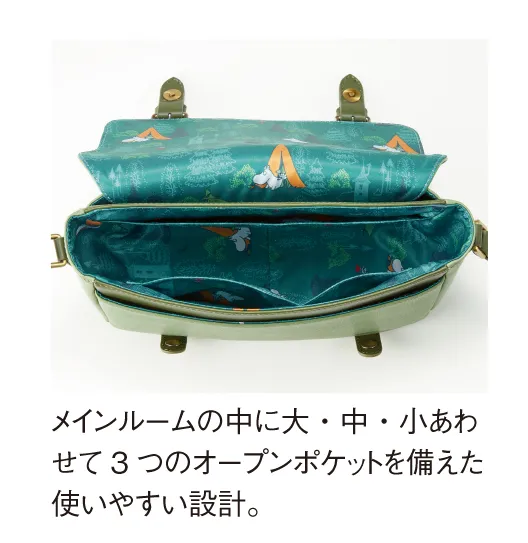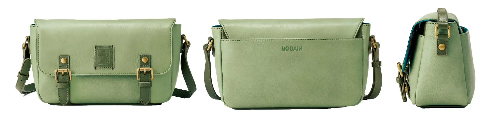 <スナフキン 森色のショルダーバッグ>はフラップの付いたミディアムサイズ。