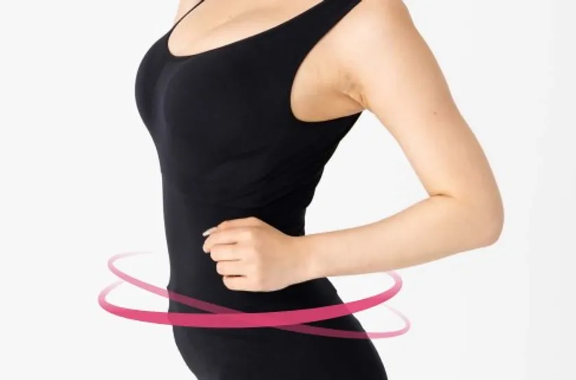 ウエスト回りを独自の強着圧設計で一気にしぼり上げ、ギュッとクビレを作ります!