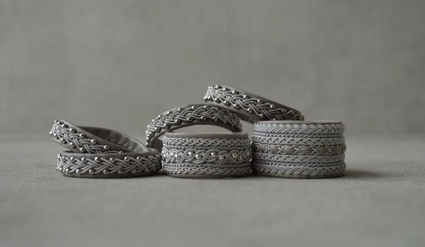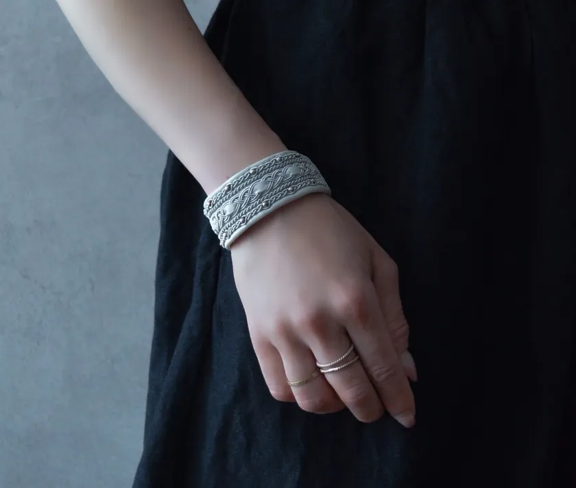 フィンランド、スウェーデン、ノルウェー、ロシアにまたがる北欧ラップランドの先住民族、サーミの人々に伝わる伝統的なアクセサリー「サーミブレスレット」。