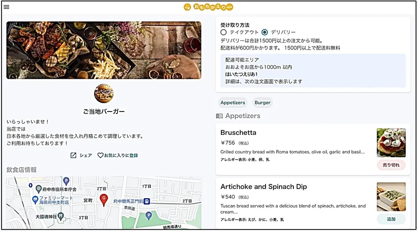 【デリバリー注文画面表示例】