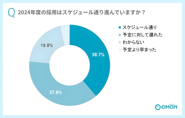 採用は「スケジュール通り」進んでいると答えた施設が38.7%。「予定に対して遅れた」の37.8%とほぼ同数となりました。