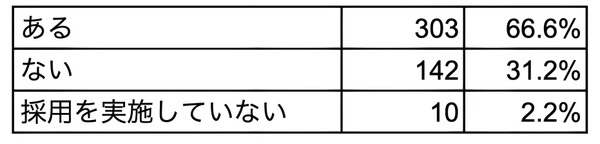 66.6%の施設が、採用がうまくいかなかった事例が「ある」と回答。前年の69.2%から微減しました。
