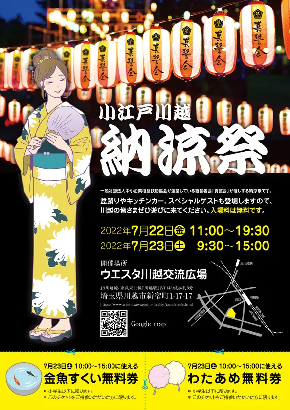ビジネス交流の場を提供する一般社団法人中小企業相互扶助協会(所在地:東京都中央区、代表理事:荒井 一寿)では、ウェスタ川越交流広場にて地域活性と交流を目的とした納涼祭を2022年7月22日(金)23日(土)に開催します。