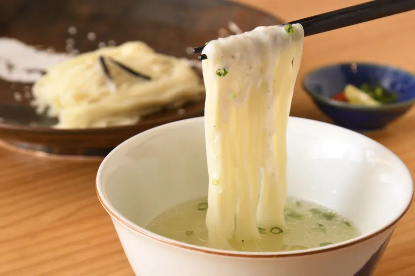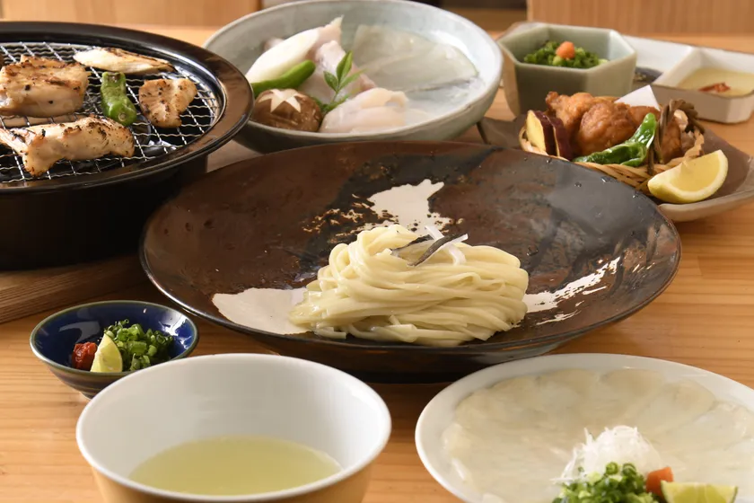 焼きふぐコースの〆でお楽しみいただける「ふぐつけ麺」。