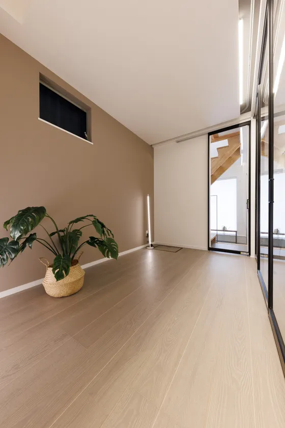 複数人が一度に出入りしても窮屈にならないゆとりある広さ。道路側に設けた大きな窓が外の空間を引き込んで、開放感をもたらしてくれます。