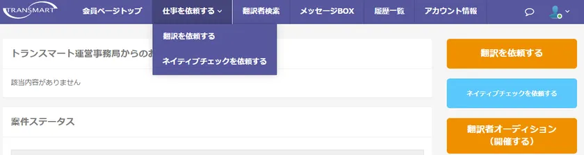 見積もり、発注、ネイティブチェッカーの選定、納品、支払いまでの全ての工程を、会員ページ上(オンライン)で完結することができます。