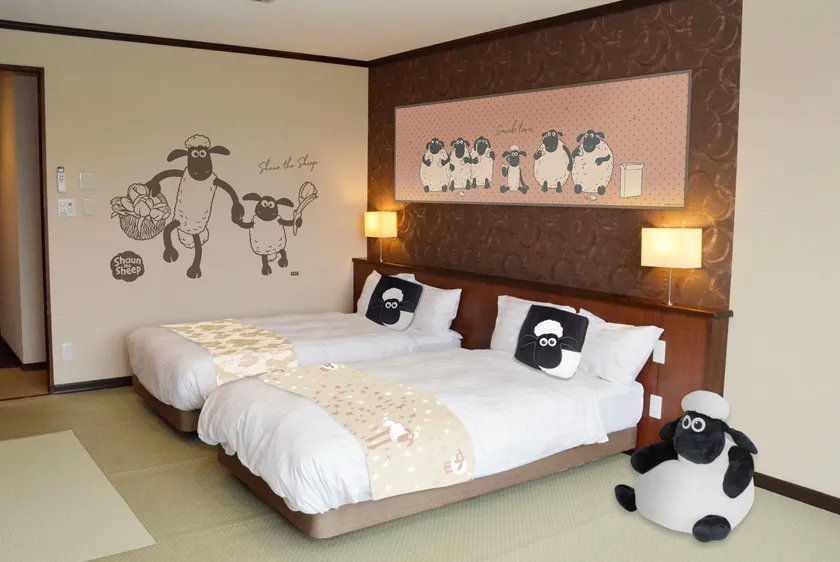 「ひつじのショーン」ルームに泊まって、ぜひ癒されてください。
