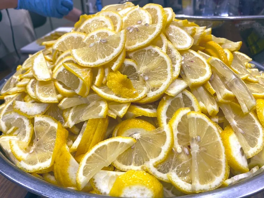 レモンの風味が出るようにブルワリースタッフで手分けしてスライス