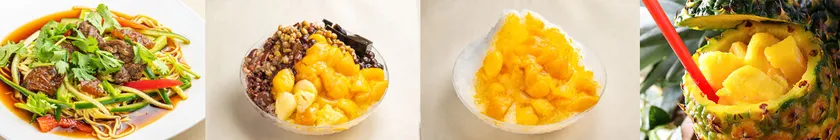 まずは、台湾で人気のかき氷。マンゴーやパイナップル、緑豆、タピオカ、茹でピーナッツとお好みでトッピングができ、お子様にも女性にも大人気の商品です。さらに牛肉麺のブースでは、新しく「台湾涼麺(タイワンリャンミェン)」が登場します。のどごし最高の冷たい麺は熱い体をクールダウンし、暑い夏にぴったりです。また今回も、大人気の「丸ごとパイナップルジュース」を販売します。なんと今回は希少価値の高い「ミルクパイナップル」を使用します!果肉が真っ白で通常のパイナップルよりも甘くジューシーな「ミルクパイナップル」は夏にぴったりのデザートです。