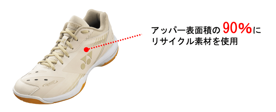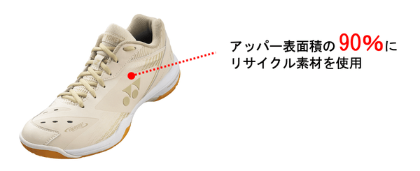 アッパー表面積素材の90%にリサイクル素材を使用したサステナブルモデル バドミントンシューズ「パワークッション65Z C-90」 2023年9月中旬より数量限定発売