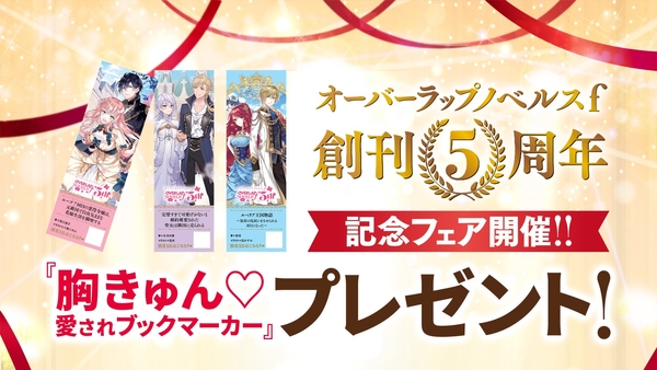オーバーラップノベルスf創刊5周年フェア開催決定!書き下ろしSSが読める『胸きゅん♡愛されブックマーカー』をプレゼント♪