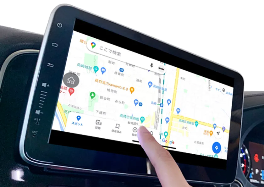 AMEX-SL02は、普段使い慣れた「ナビアプリ」をミラーリングで映し出したり本機にインストールすることで、大画面モニターで常に最新版のナビを使うことができます。地図情報が古く目的地になかなか着かない状況や、地図情報を更新するために余計な費用を使う状況がない為、ストレスのないドライブを実現します。