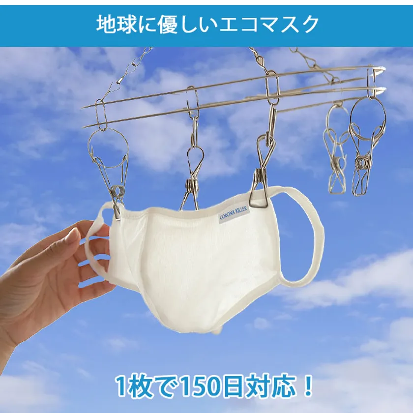 ・使い捨てマスクと異なり繰り返し洗って使える地球に優しいエコマスク。