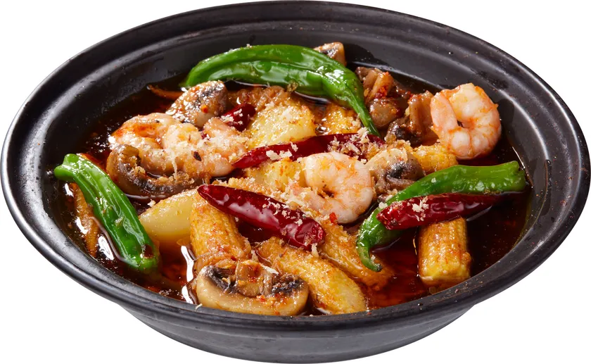 ・海老と夏野菜の辛アヒージョ ¥1,408 Spicy Level★★