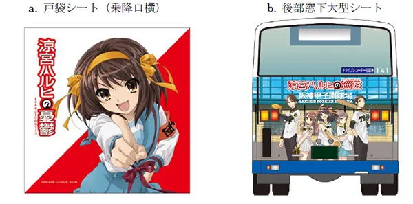 阪神バス「西宮山手線・鷲林寺線」を運行するバス1台をラッピング装飾します。車内にも「涼宮ハルヒ」イラストを使用したポスターを掲出します。