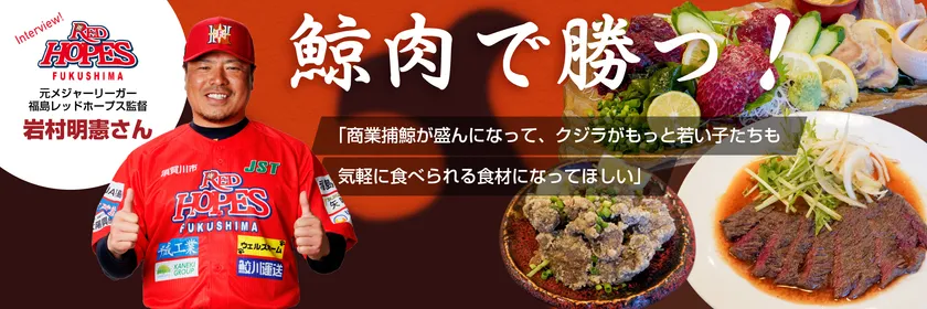 くじらタウン、アスリートインタビュー第4弾! くじら肉の新たな魅力を発見! 若い世代にも気軽な食材になって欲しい 元メジャーリーガー・福島レッドホープス監督の 岩村明憲氏が登場