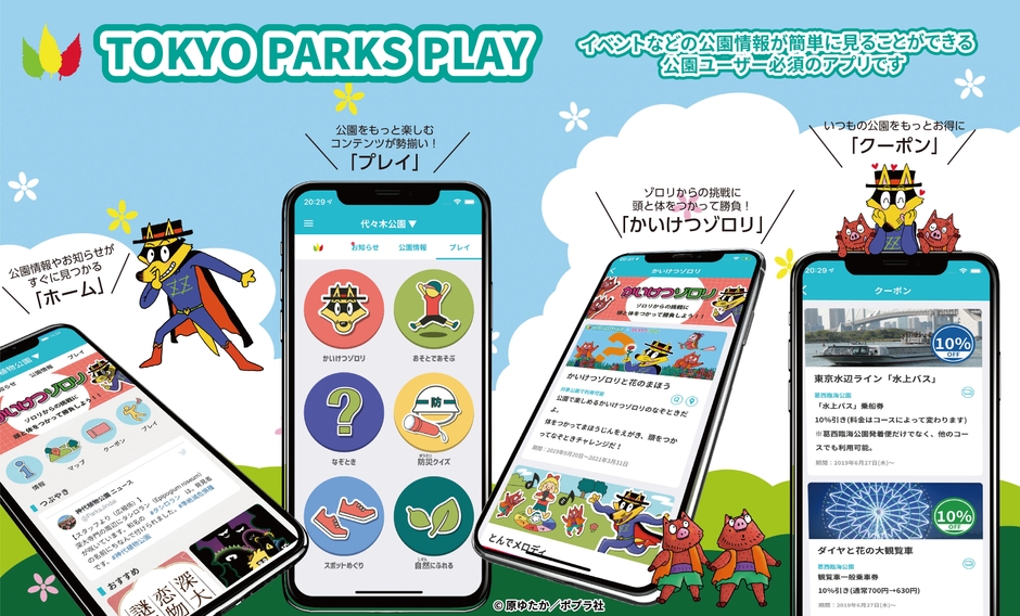 公園協会アプリ「TOKYO PARKS PLAY」を活用し、スマートフォンで遊べるキッズイベントを開催します。クリアした方には、オリジナルシールをプレゼント。