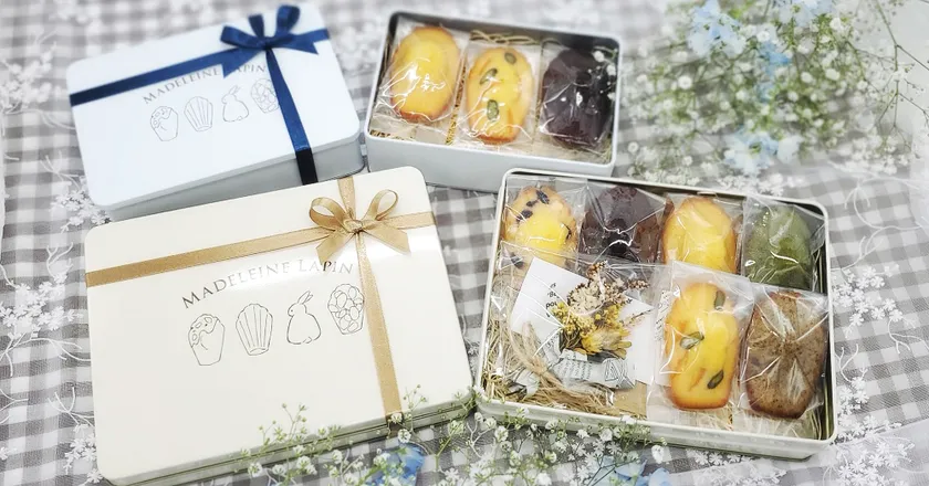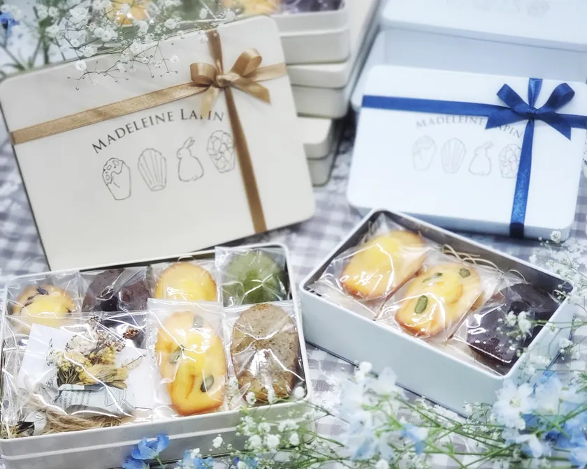 7周年を記念して作成したデザイン缶に、この夏のフレーバーをお詰めしました。マドレーヌラパンらしいシンプルかつ上品なデザインは、贈りものにはもちろんのこと、自分用にも選びたくなる可愛らしさです。