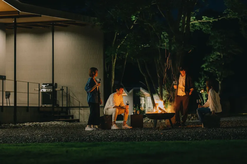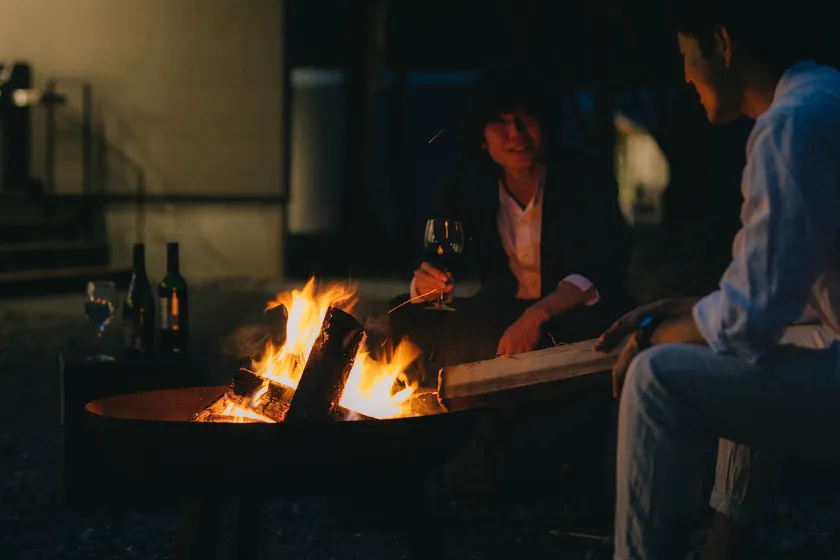 夜は焚き火を囲んで大人のアウトドア体験をどうぞ。