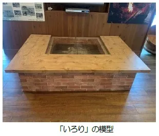 (7)車内イベント 海女小屋の「いろり」の模型の展示、あおさ汁のふるまい、海女さんになろう(海女着体験)、