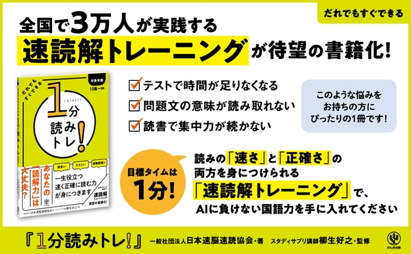 子どもから大人まで!AIに負けない「速く正確に読み解く力」を養う「速読解トレーニング」が待望の書籍化!