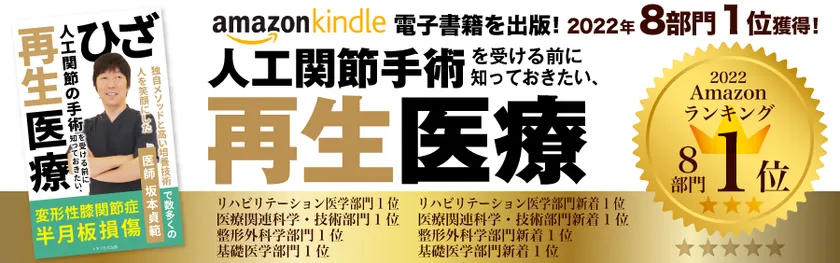 医療法人美喜有会 再生医療専門クリニック リペアセルクリニックの院長である坂本 貞範は、書籍「人工関節の手術を受ける前に知っておきたい、再生医療という選択肢 ~いつまでもスイスイ歩ける膝のために行う、幹細胞注射という自由診療~」を刊行いたしました。