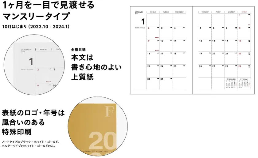 ■ノートタイプ 薄型・軽量で持ち歩きに便利なマンスリーダイアリー