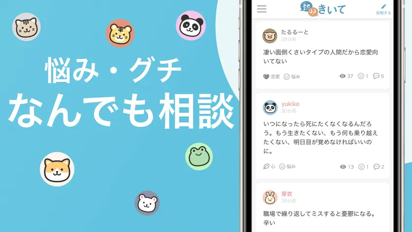 ■悩み相談や愚痴・雑談ができるアプリ「きいて」