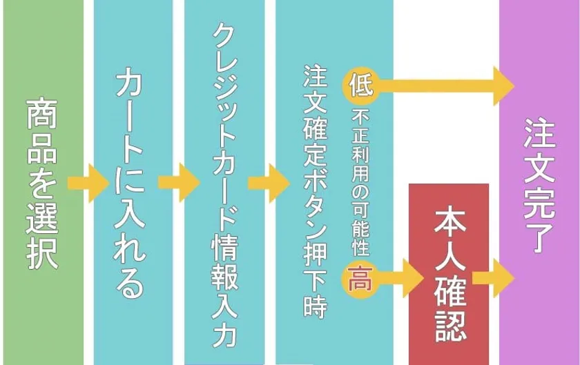 ※リスクベース認証とは、デバイス情報や、位置情報、曜日や時間帯などの購入者さまの行動パターンが普段と異なる場合、第三者による不正利用を疑い、リスクのレベルをカード会社により判定します。