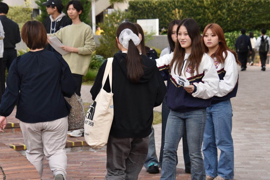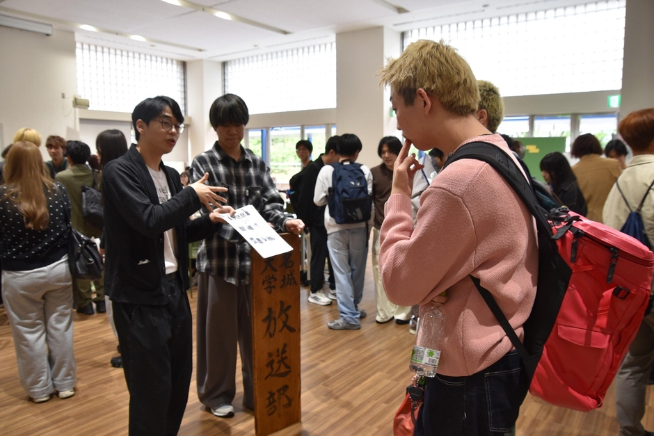 令和8年度の新入生歓迎(新歓)イベントが連日、天白キャンパスのタワー75などで開催されています。大学生活を彩るクラブの選択の参考にしようという新入生たちが、各クラブの魅力を伝えようという熱気あふれる演舞に見入ったり、勧誘ブースで先輩たちに熱心に質問したりしています。新歓イベントは5月初旬まで続きます。