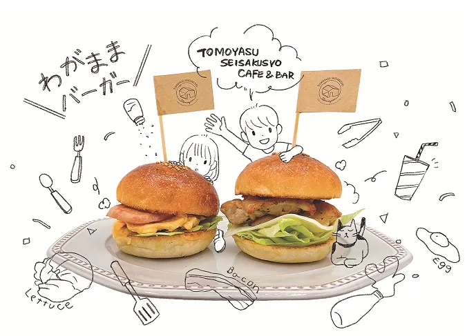 阿倍野区にある人気カフェ「友安製作所Cafe&Bar 阿倍野」とのコラボレーション企画。好きな具材を選んで、好きな順番に挟んだ「わがままバーガー」を作ることができます。