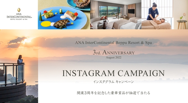 ANAインターコンチネンタル別府リゾート&スパ開業3周年を記念して、Instagram投稿キャンペーンを行います。期間中、素敵なご投稿をいただいた中から抽選で、宿泊券やスパトリートメント券などの豪華賞品をプレゼント!