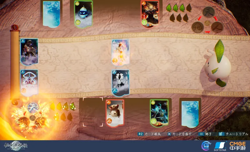 Game Source Entertainment(香港、以下 GSE)は、Softstar Technology(北京)が開発した、アクションRPG《仙剣奇侠伝 -守り合い-》の日本語パッケージ版をPlayStation(R)4とPlayStation(R)5で2022年8月25日に発売いたします。本作には、カードゲーム「天地遊」が収録されています。カードはマップ上の「葉霊」と対局することで獲得することができ、すべてのカードを集めるとそれに応じたアチーブメントをアンロックすることができます。今回は、カードゲームと、日本語公式HPを公開いたします。