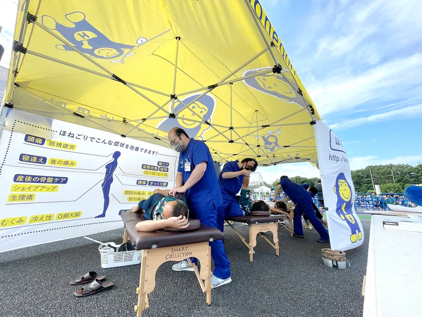 SC相模原のサポートファミリーのスポンサーである接骨院 “ほねごり”が7月9日(土)のホームゲームで「無料施術体験」を実施
