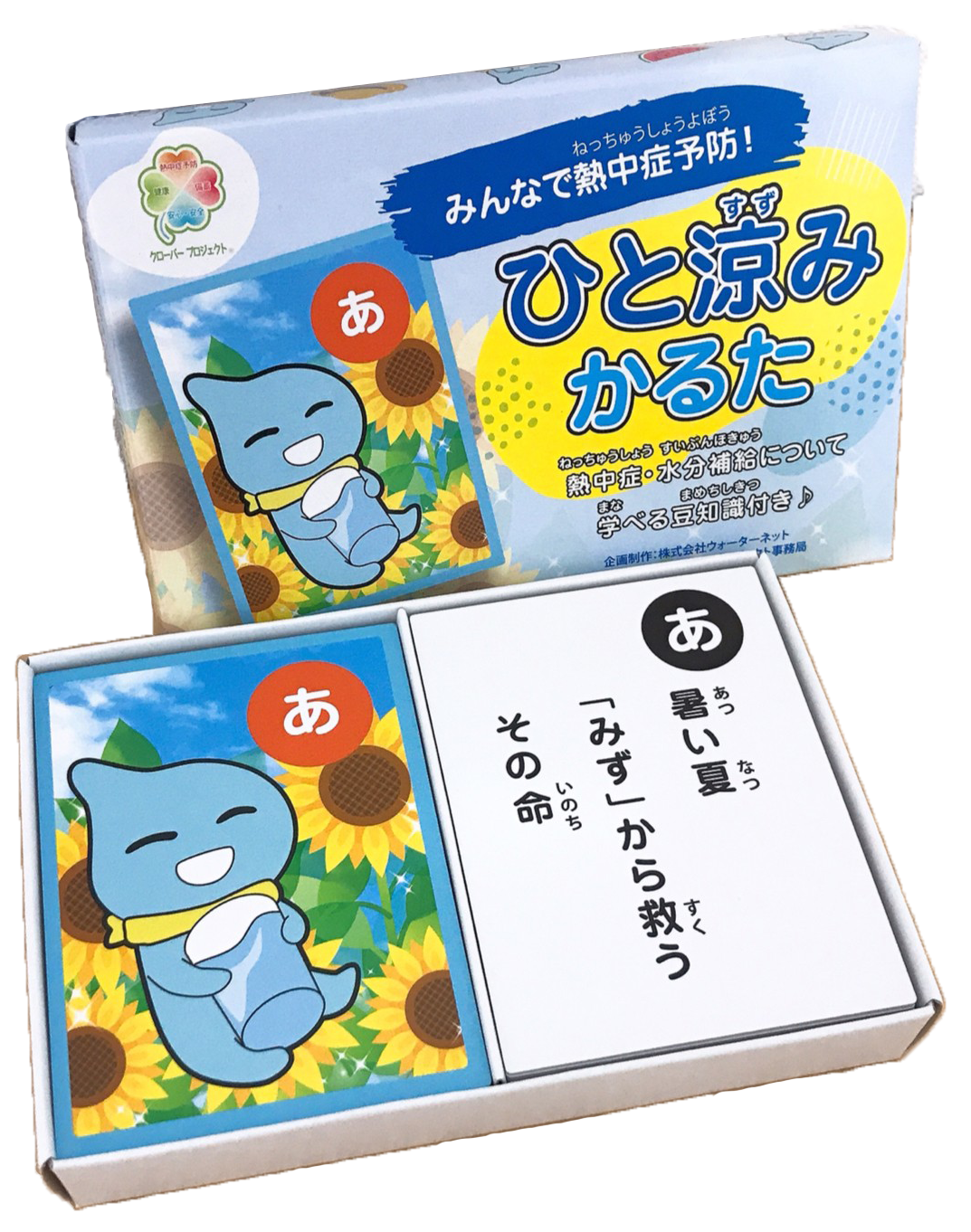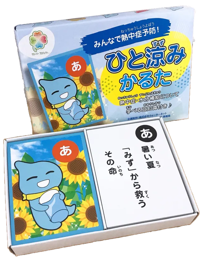 宅配水事業を通じて、声かけの力で社会問題の解決や啓発活動に取り組む株式会社ウォーターネット(本社:東京都中央区、代表取締役社長:山田 啓輔)は、クローバープロジェクト(熱中症予防、備蓄、安心・安全、健康)のひとつ「熱中症予防」の啓発活動の一環として遊びながら学べる「ひと涼みかるた」を作成しました。