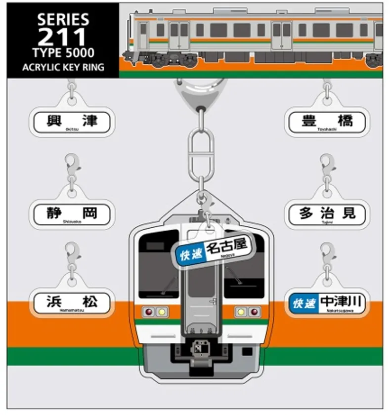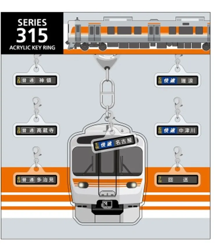 通勤型電車として、新たにデビューした「315系」。東海キヨスク限定、人気のアクリルキーホルダー・ジェットストリーム4&1・車窓クリアファイルをご用意しました。中でも、「名古屋」・「中津川」・「多治見」など代表的な行先表示チャームが付いたアクリルキーホルダーはみんなに自慢したくなるグッズです。